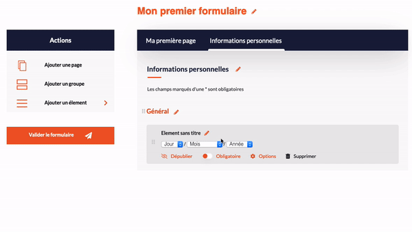 Votre formulaire est divisé en différentes pages.